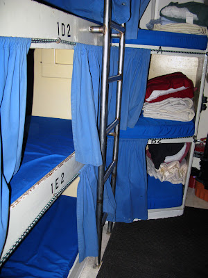 We took one look at the cramped bunk spaces - the bunks were about 6'2" long and MF is 6'9" long - and decided to stow some towels and other stuff on one to reserve it for the next day, but that we would be better off getting a room at the nearby Holiday Inn Express at the harbor.